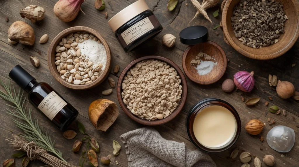 “地元産ハーブ”“国産原料”などの開発背景を紹介し、